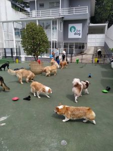 O day care também oferece a oportunidade de o cão ter uma vida social ativa, interagindo com os demais em segurança, uma vez que são divididos por grupos de afinidade e há observação em período integral.